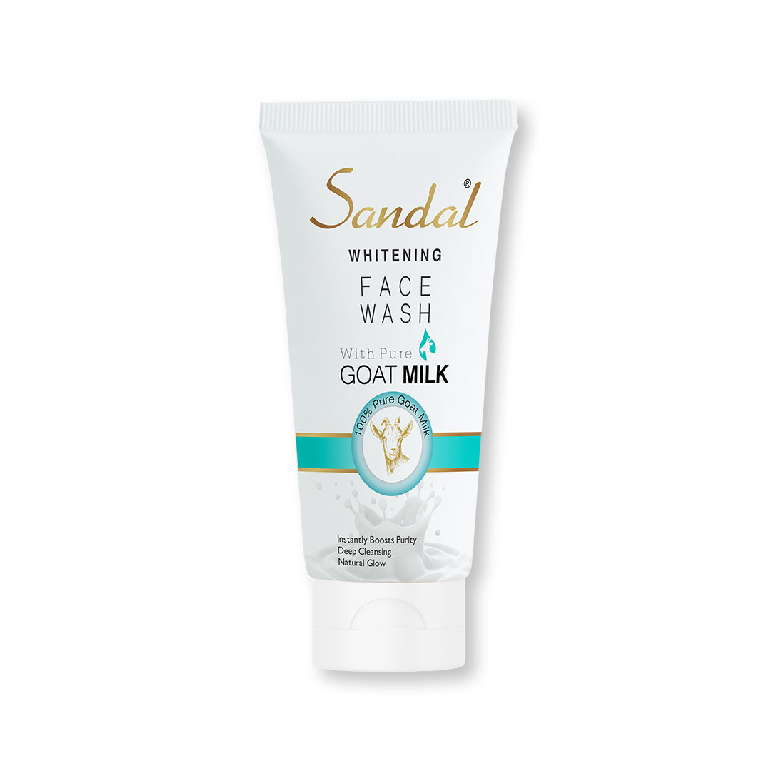 Sandal Goat Milk Whitening Face Wash is rich in minerals and vitamins prevent skin damage & protects top layer of your skin from damaging sun rays. It contains lactic acid which exfoliates the skin to remove dead cells from the surface to give you radiant 7& and younger look you will love. Goat Milk also controls acne and has smoothing benefits and make your skin soft & healthy. Sandal Goat Milk Whitening face Wash is combination of goat milk with proven cleansing base enrich with moisturizer to whiten, nourish and revitalize your facial skin for glowing healthy look.