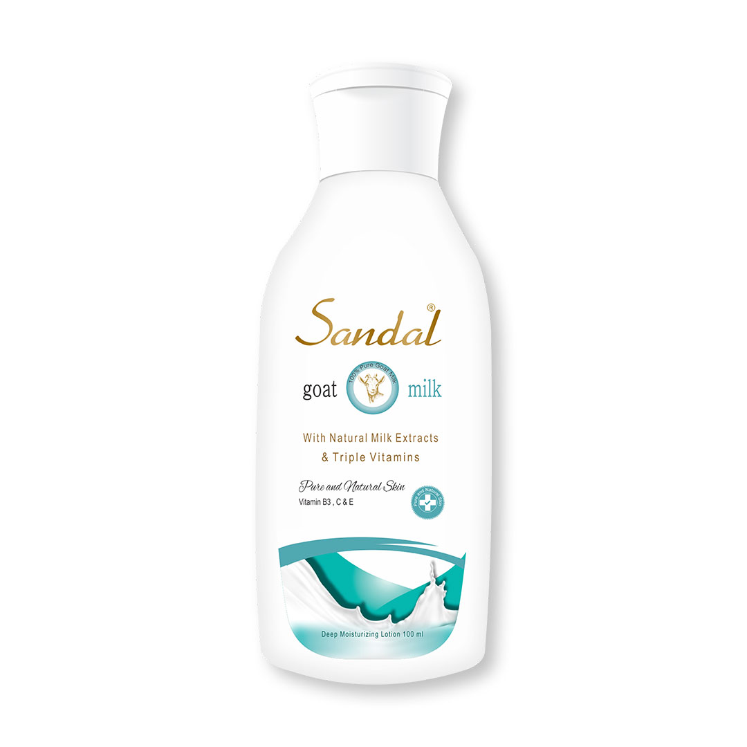 Sandal Goat Milk Lotion enriched with goodness of aloe Vera & milk, moisturizing cleanser penetrates deep into skin’s pores & gently removes dirt, oil, make up and other impurities. maintain your skin natural moisture balance. not only removes Impurities from your skin but it also works as a great moisturizer. It quickly and gently removes all the dirt and dead cells and provides you with radiant glow.